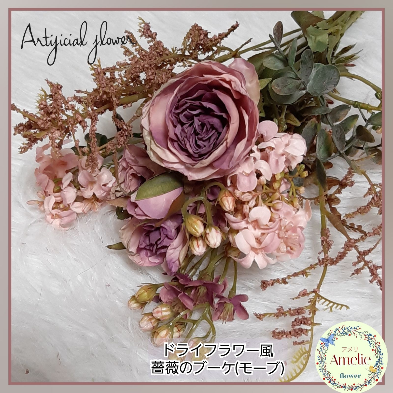 メルカリshops B15 3 造花 3束 ドライフラワー風 ローズのナチュラルブーケ 薔薇